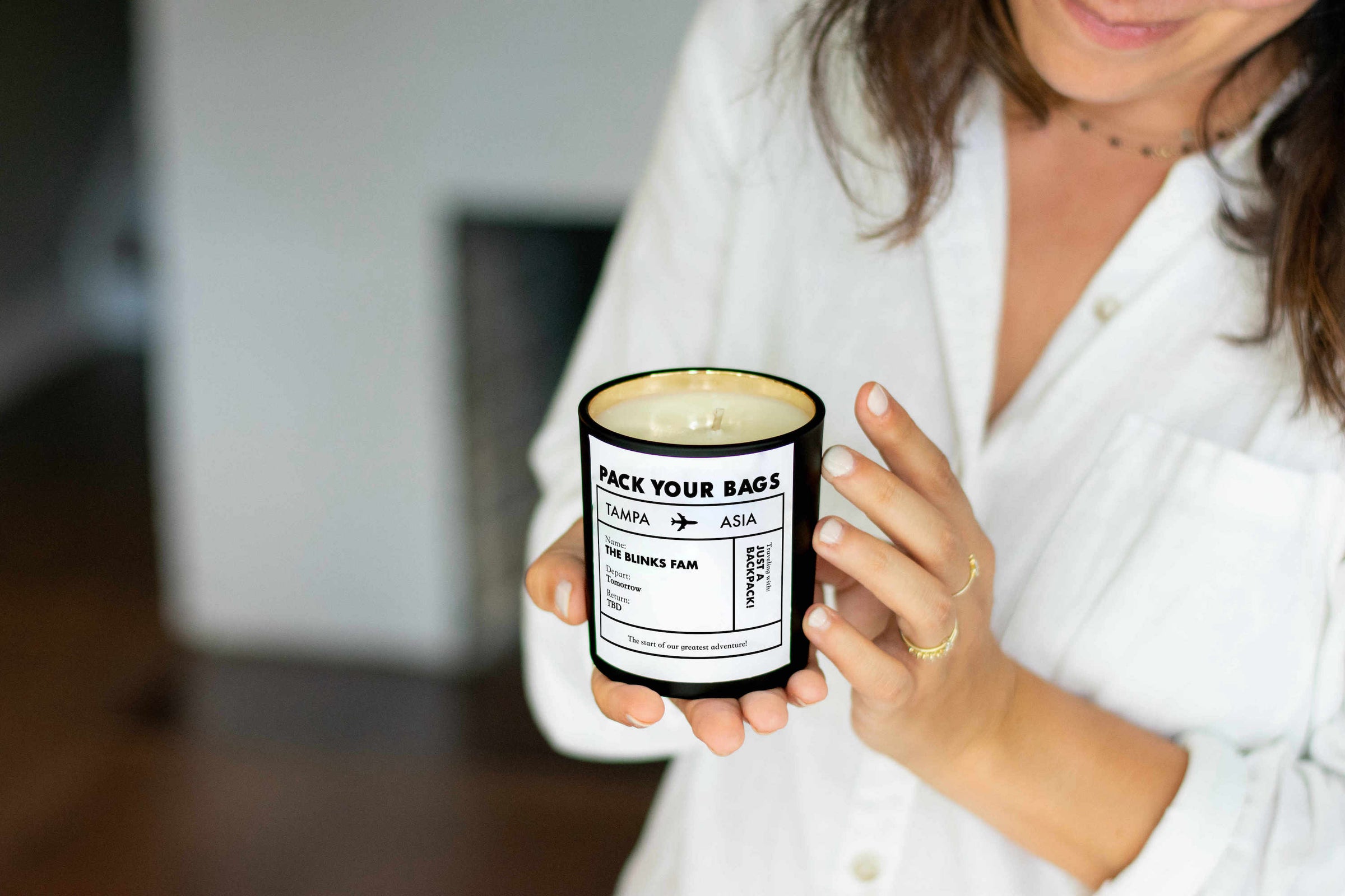 Recently, we partnered with our friends, The Blinks Fam, to create a line of custom and playful candles to celebrate the magic of travel! This collection has candles to commemorate a favorite getaway, remember a special memory from a recent trip, or announce an upcoming family vacation.