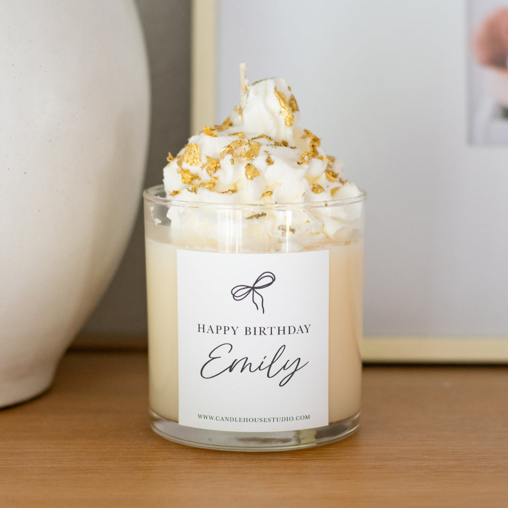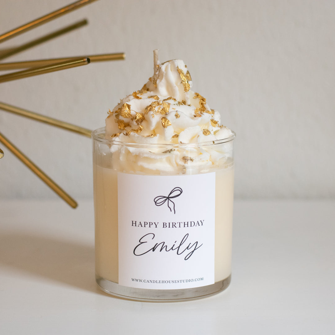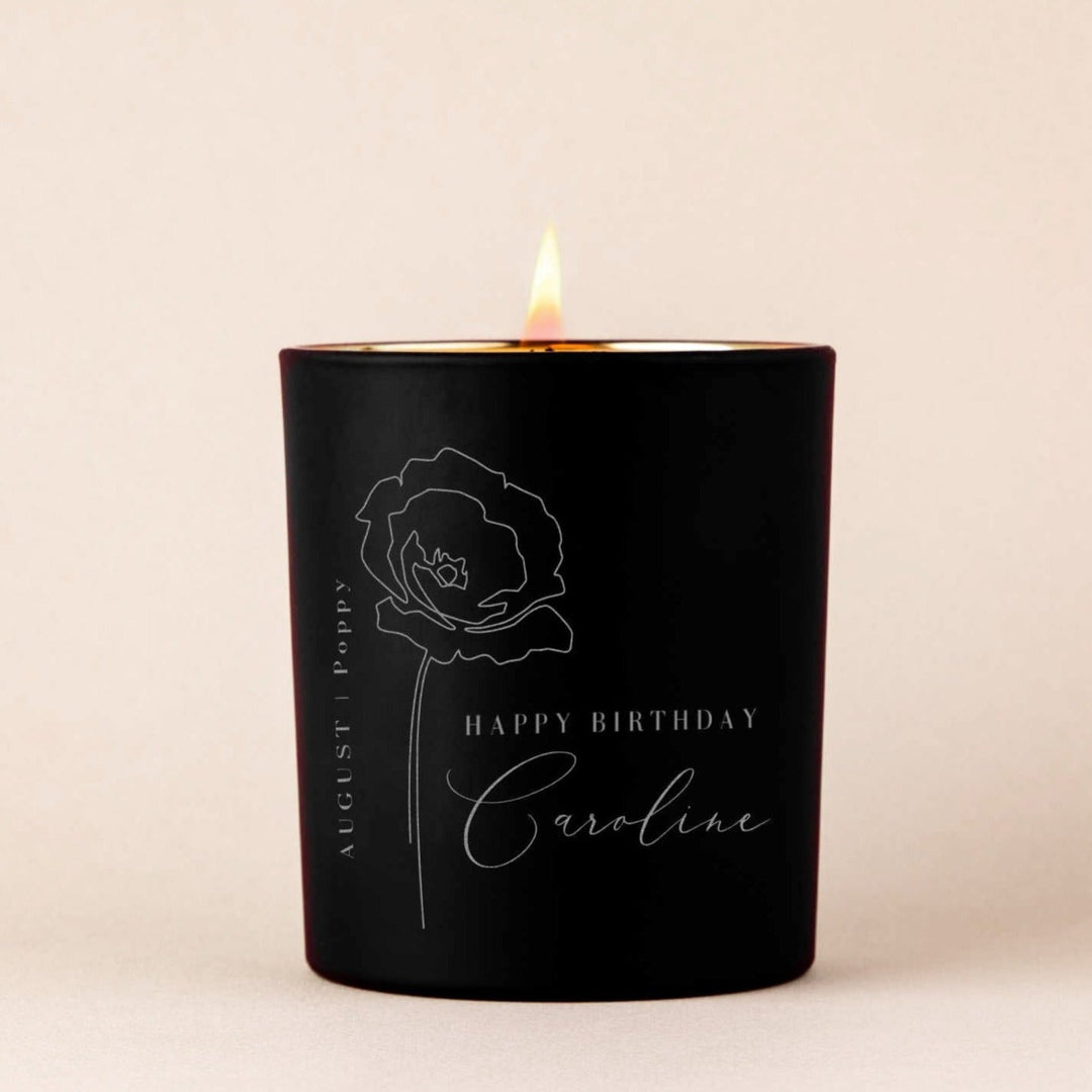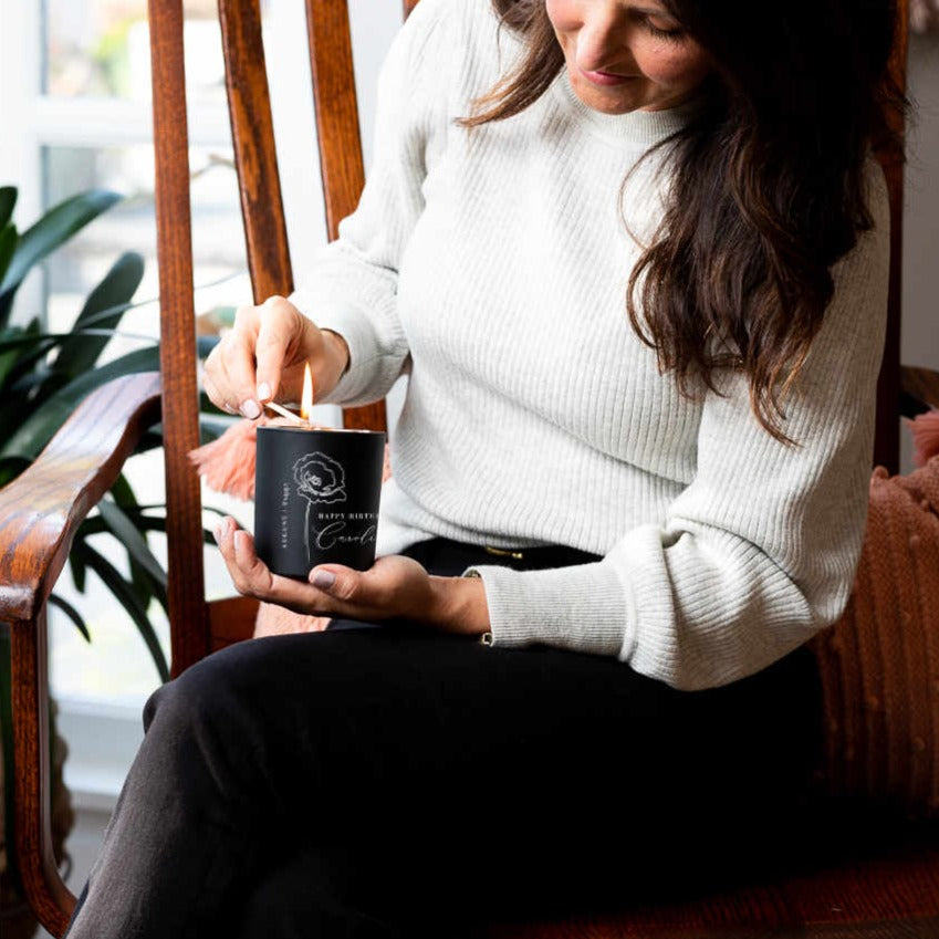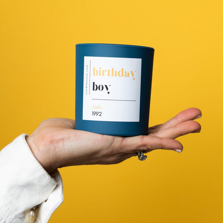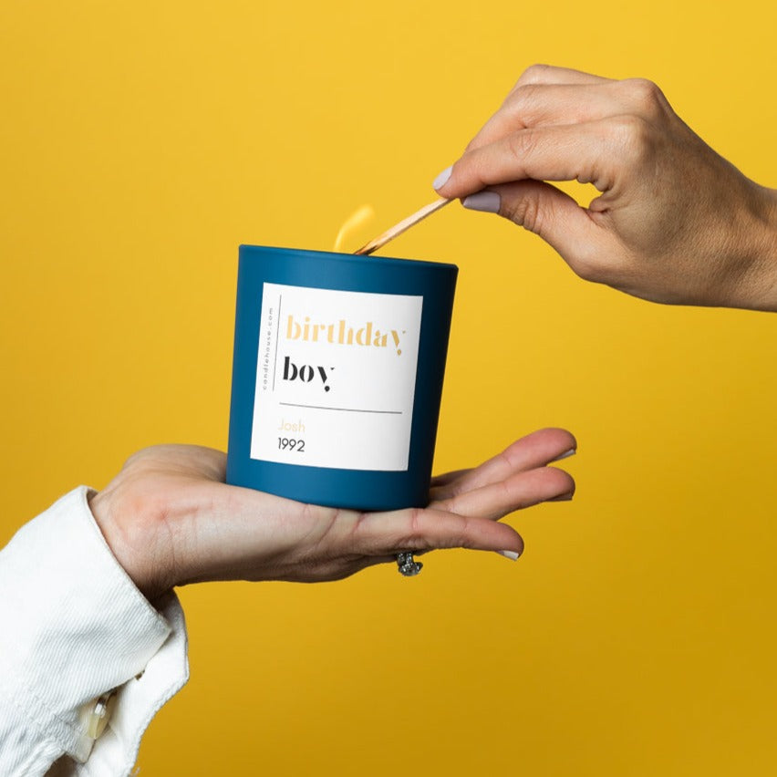 Show your family and friends how special they are to you with a custom birthday candle from CANDLEHOUSE! A personalized candle is a unique gift to brighten their birthday. You can be sure that they will feel your love with this special small batch custom candle. Each candle can be customized with your friend’s name, birth month flower, birth date, age, or personalized message. This is one of the best gifts you can give someone who is celebrating a milestone birthday! Whether they are turning twenty one, forty, seventy, or ninety, our custom milestone birthday candles are sure to be a hit! We offer these candles scented with citrus and fruits, amber and oakmoss, and redwood and birch. They burn on average 60 to 70 hours, and are each 10 ounces. Our candles contain no additives or dyes, are made from the finest premium grade essential and fragrance oils.