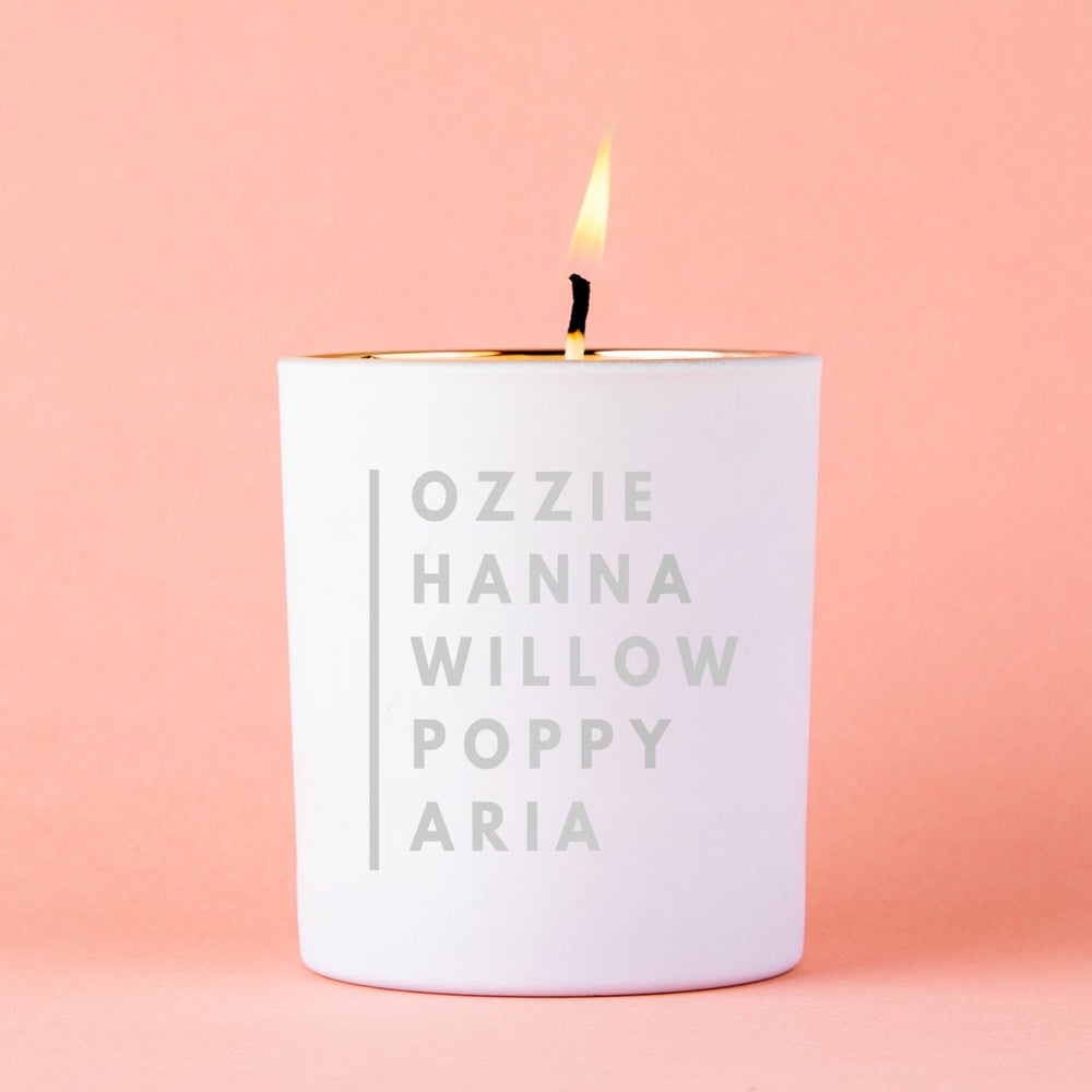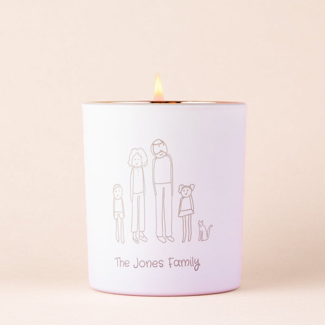 Celebrate your family and friends with a personalized candle. These candles make the perfect gift for any occasion – from graduations, anniversaries, birthdays, or just because! You can choose a candle customized with the names of your family and friends, with family silhouettes, or with family stick figures. If you need a unique custom gift for someone special in your life, we have you covered with our cute and custom family celebration candles! Candles are scented with citrus and fruits, amber and oakmoss, and redwood and birch. They burn on average 60 to 70 hours, and are each 10 ounces. Our candles contain no additives or dyes, are made from the finest premium grade essential and fragrance oils.